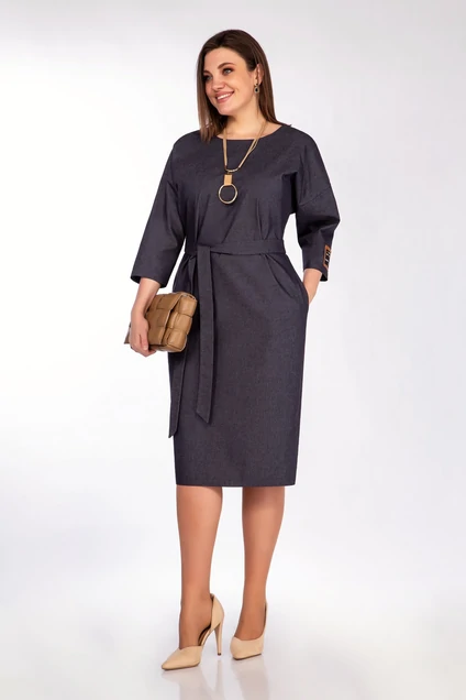Стильное женское платье-трансформер, выполненное из тонкого джинса, которое можно носить с застежкой как ни перед, так и на спинке. Платье без вытачек. Прямого силуэта со спущенной линией плеча и карманами в боковых швах. Рукав на основе цельнокроенного. Застежка на петли пуговицы. на одном из рукавов - декоративная нашивка. /Талия подчеркивается поясом из основной ткани. длина рукава - 32см, ширина плеча - 23см, длина изделия - от угла горловины - 100см, от округлой горловины - 106см.
