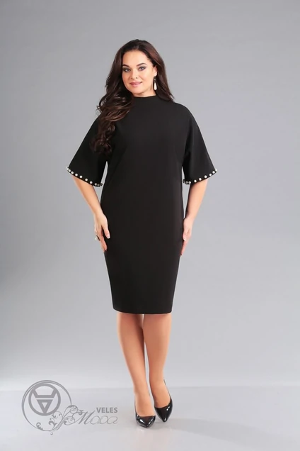 нарядно-повседневное платье прямого силуэта, рукав цельнокроенный, по спинке застежка-молния, по низу рукавов декоративные бусины-жемчуг