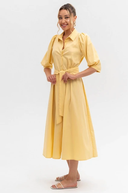 Представляем вам наше новое платье-рубашку! Это идеальное платье для тех, кто ищет комфорт и стиль в одном наряде. Прямой свободный крой и короткий рукав-фонарик создают удобный и стильный образ, а манжеты на рукавах добавляют элегантности. Воротник рубашечного типа добавляет женственности и элегантности, а пуговицы по всей длине делают его еще более удобным в использовании. Кроме того, в комплекте с платьем идет пояс, который можно использовать для создания различных образов. Это платье идеально подойдет для повседневной носки, но также может быть использовано для особых случаев. Не упустите возможность приобрести это красивое и функциональное платье-рубашку уже сегодня!