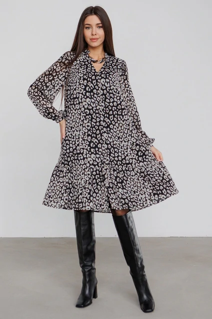 Это женское шифоновое платье с подкладкой - идеальный выбор на все случаи жизни. Свободный крой не сковывает движений, а длинный рукав обеспечивает комфорт. Сборка на рукаве добавляет платью легкости и воздушности. Платье застегивается на удобные пуговицы, а притачной волан по низу юбки создает игривый и женственный образ. Длина платья до колена - это золотая середина, которая подходит для любого случая. В комплекте с платьем идет стильный пояс, который поможет подчеркнуть талию и создать более изящный силуэт. V-образный вырез визуально удлиняет шею и делает акцент на зоне декольте. Красочный принт на ткани добавит яркости и настроения вашему образу. Это платье станет отличным выбором для прогулок, свиданий и вечерних выходов. Будьте уверены, в этом платье вы не останетесь незамеченной!