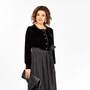 Платье женское, нарядное, полуприлегающего силуэта выполнено из фактурного трикотажного полотна премиум-класса. Горловина фигурной формы. Перед с нагрудными вытачками и средним швом в котором обработан разрез. Спинка со средним швом. Рукава втачные, одношовные с небольшим разрезом по шву.