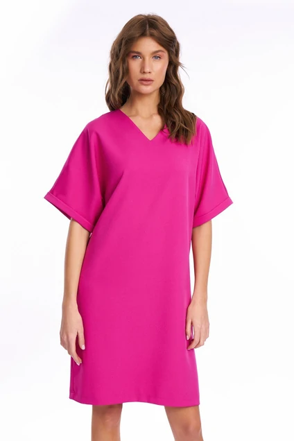 Платье женское свободного кроя, прямого силуэта с цельнокроеным рукавом. Горловина V-образной формы . Спинка с перфорацией - бабочка.Платье длиной до линии колена, рукава с отложными манжетами.
