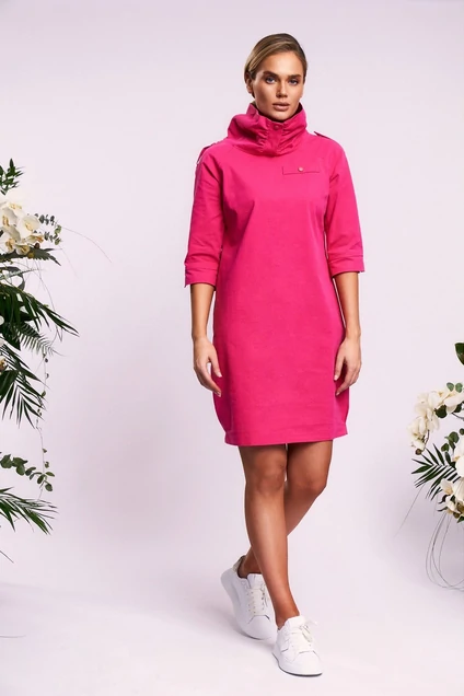 Рукава реглан, проходящие в середину горловины. По переду платья с левой стороны имеется имитация кармана с листочкой.