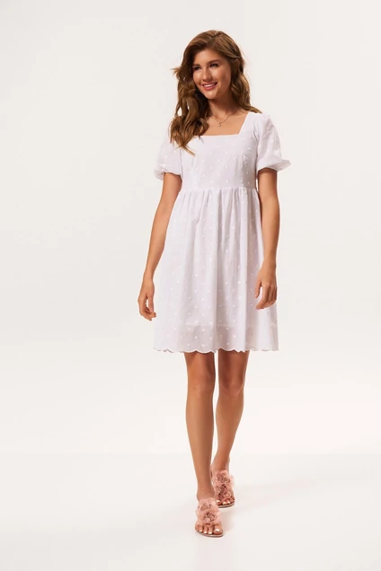 Лёгкое женское платье полуприлегающего силуэта, отрезное по линии талии.