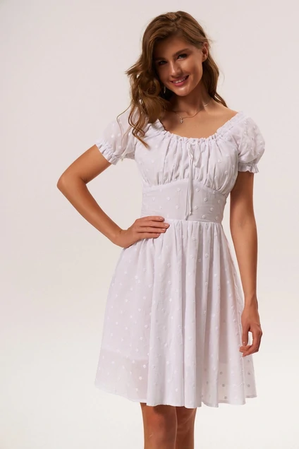 Верхняя часть с отрезным лифом, подрез фигурный. По верхнему краю лифы рюша и кулиска, в которую вставлена завязка.