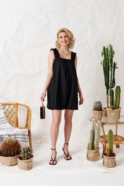 Мини сарафан из натурального материала. Свободный крой скроет недостатки фигуры и подарит чувство комфорта. В нем вы будете чувствовать себя удобно и непринужденно в любой ситуации. Сарафан прекрасно смотрится на любом типе фигуры.