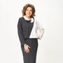 Элегантное женское платье из нарядной плательно-костюмной ткани с добавлением вискозы и метонити. Силуэт полуприлегающий, длина чуть ниже колена, однобортная застежка на обтяжные пуговицы, воротник пиджачного типа, по переду прорезные карманы с клапанами, по спинке в среднем шве шлица, рукав длинный. Особый шарм платью придает съемное украшение - цветок из основной ткани.