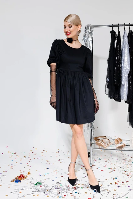 Стильное коктейльное платье для вечеринок. По переду юбка со сборкой. Рукав объемный, длинной до локтя, на резинке. По спинке фигурный вырез с пышным бантом, по талии расположена резинка. Бант расположен на месте застежки бюстгальтера, это означает, что ваше белье никто не увидит. Платье отлично подойдет для торжественных выходов, его можно надеть на вечеринку, свидание или свадьбу лучшей подруги. В нем вы будете приковывать взгляды всех мужчин.