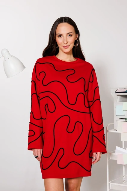 Свободное платье с контрастной абстрактной вышивкой мягким шнуром — одна из самых уютных моделей для повседневного гардероба и отличная пара для повседневных образов. Мы выбрали для него плотный трикотаж из хлопка без начеса с особенно прочными и устойчивыми к деформации волокнами. А значит, платье будет выглядеть как новое даже через несколько сезонов. Длина - 82 см.