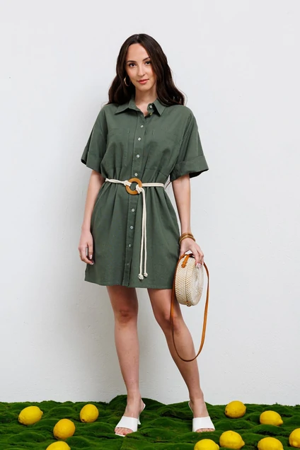 Платье прямого кроя в стиле “сафари”. По переду выполнены накладные карманы на груди, застежка - сквозная планка на пуговицы из натуральной ракушки. В боковом расположены удобные карманы. Линия плеча спущенная, рукав короткий с отворотом. По низу расположены маленькие сексуальные разрезы. По спинке кокетка от которой расположена бантовая складка. Благодаря свободному покрою, оно подходит для каждой женщины. Независимо от возраста, комплекции и роста, универсальный стиль этого платья способен преобразить фигуру любой женщины. В комплекте идет пояс, который поможет сделать акцент на вашей талии. Материал из которого выполнено платье хорошо поглощает влагу, не вызывает аллергии, обладает высокой степенью воздухопроницаемости. Льняное платье имеет большой срок службы, сохраняет первоначальный внешний вид даже после множества стирок. Оно не растягивается и не садится после стирки. Ткань не просвечивается, и не катается после носки.