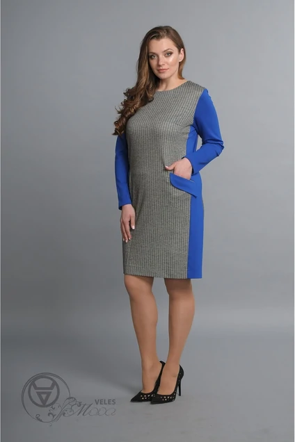 Платье полуприлегающего силуэта с круглым вырезом горловины. Перед с нагрудными вытачками и цельнокроенными бочками. На уровне бедер втачные карманы, верх которых обработан клапанами. Спинка со средним швом и металлической молнией в шве. Рукав втачной, длинный, одношовный. Размеры 46-50 : Длина изделия 94 см, длина рукава изделия 62 см.