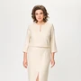 Платье прямого силуэта, с круглым вырезом горловины. Перед с нагрудными вытачками, карманами в швах, отделочной деталью по низу и горловине. Спинка с потайной тесьмой - молнией в среднем шве, отделочной деталью по низу и горловине. Рукава втачные, одношовные, длиной 3/4, с притачной манжетой. Размеры 48-52: длина платья 94 см, длина рукава 45 см. Размеры 54-58: длина платья 98 см, длина рукава 45 см
