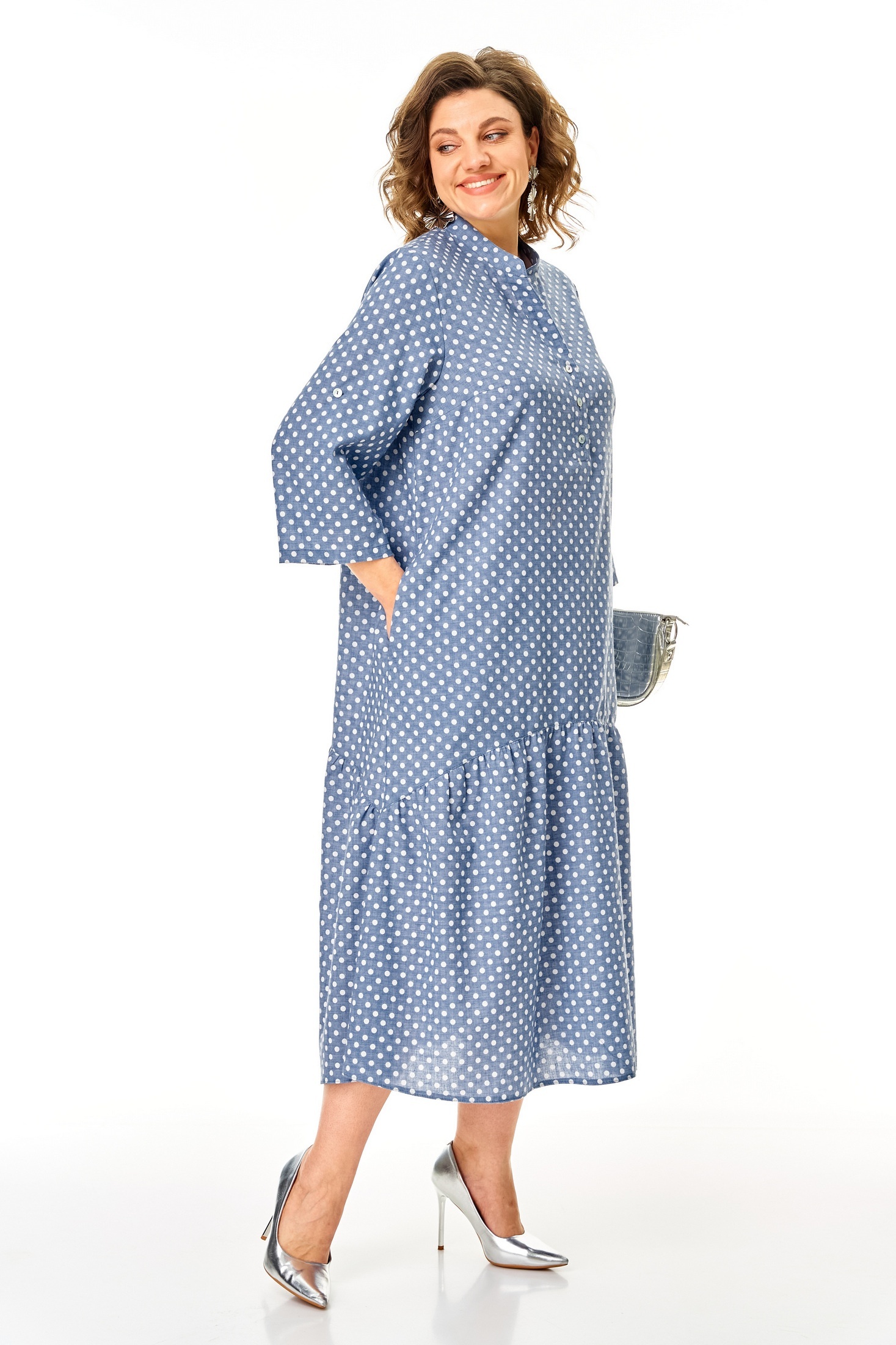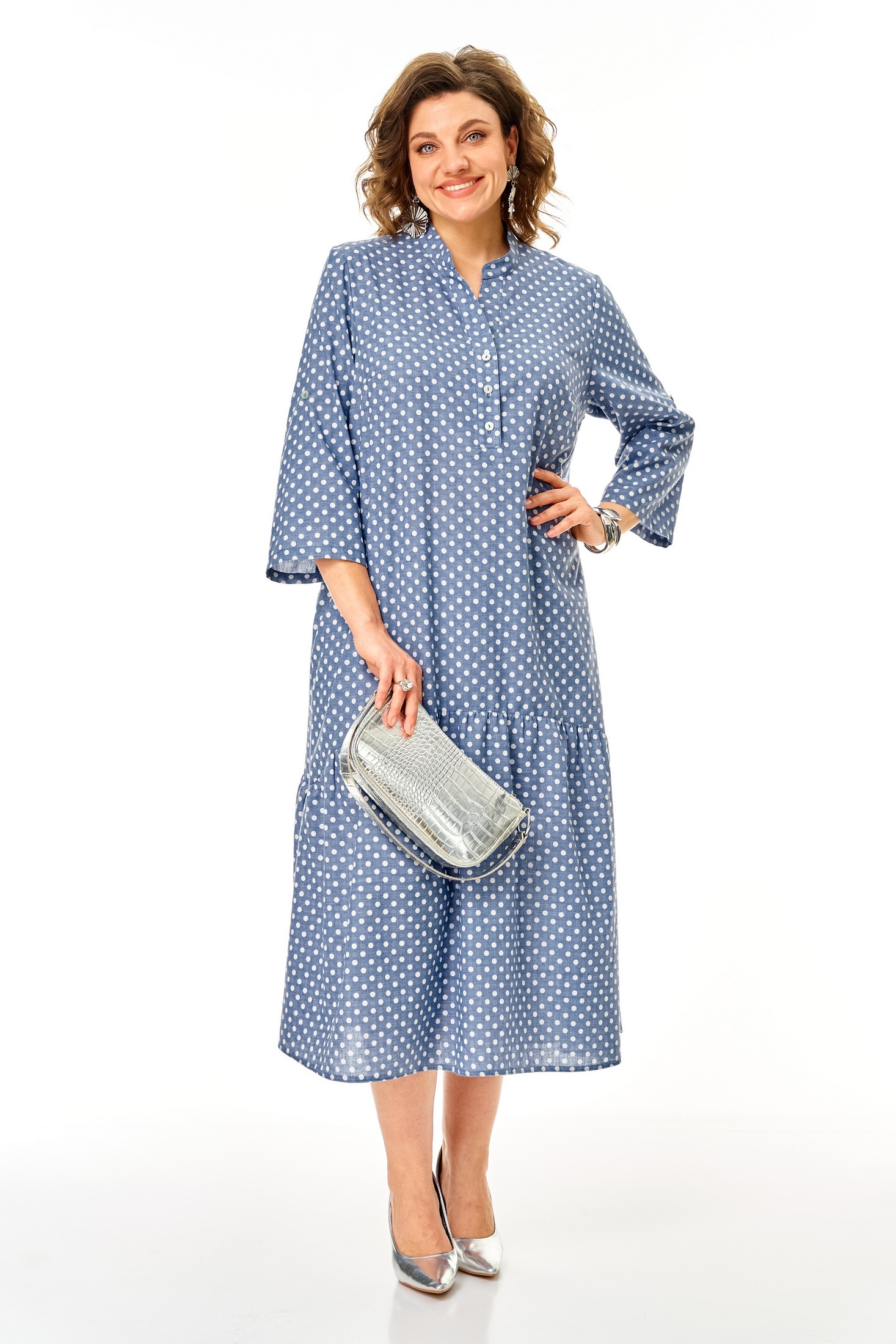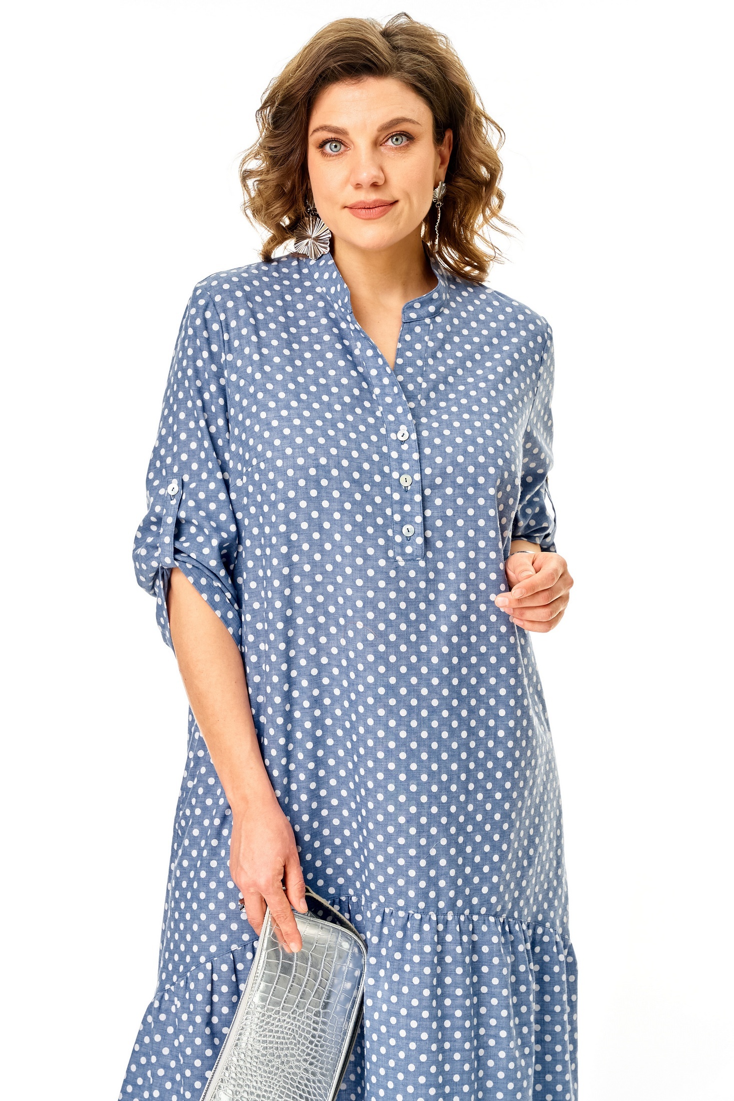 Платье 26321 голубой Ladysecret — это стильное решение для летних будней. Коллекция бренда Ladysecret предлагает легкую и приятную на ощупь ткань, сочетающую полиэстер и хлопок, что обеспечивает комфорт и воздухопроницаемость. Платье выполнено в свободном А-образном силуэте с фигурным подрезом и нежным валаном по низу. Втачные удлиненные рукава с хлястиком, воротник-стойка на пуговицах и боковые карманы придают изделию функциональности и стиля. Нежный голубой фон с горошками добавит яркий акцент в ваш гардероб. Длина изделия 124 см позволяет подчеркнуть элегантность и свободу движений. Идеально подойдет как для офиса, так и для прогулок на свежем воздухе.