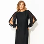 Платье женское из мягкой,плательной, вискозной ткани, свободного силуэта,расширенное книзу, длиной до середины икр,с втачными рукавами, отрезное на уровне линии талии, в боковых швах обработаны карманы. Деталь лиф переда и юбки платья со средним швом, который заканчивается разрезом. Рукава втачные одношовные, длиной 3/4, с центральным вертикальным разрезом, на котором декоративно прикреплены по 4 пуговицы. По низу рукавов вставлена эластичная тесьма. Вырез горловины платья «V-образной» формы.Платье: длина рукава – 36см, ширина рукава – 30,5см, длина спинки – 124см.