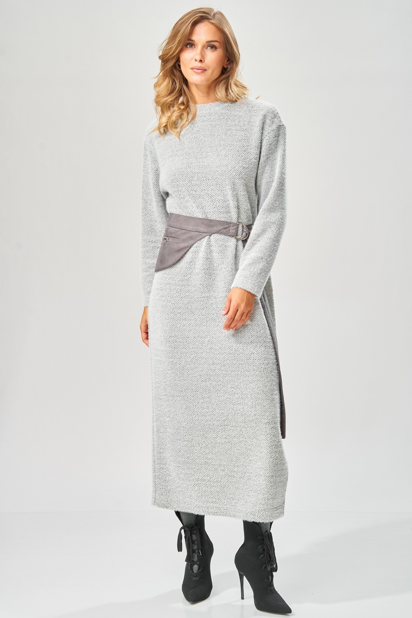Платье 573 серый + диагональ LAIKONY