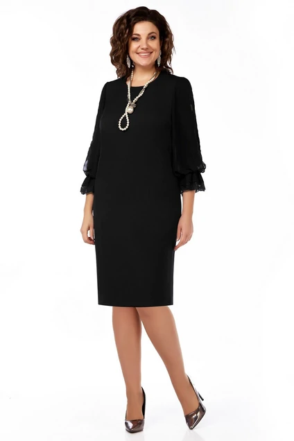 Нарядное платье прямого силуэта, длиной до середины колена, впереди нагрудные вытачки, по спинке застежка «молния» и шлица.
