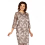 Нарядное женственное платье выполнено из пластичной шелковистой ткани, чехол из тонкого трикотажа. Впереди удлиненный вырез горловины, подрез под грудью сборкой на лифе. На боковых деталях подрезы, поддерживающие талию. Платье к низу расширено, длина – «миди». Рукав короткий, в виде крыла.