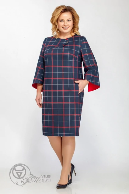 Платье полуприлегающего силуэта, выполнено из костюмно-плательной ткани. Платье с карманами, сзади шлица. Длина платья сзади от плечевого шва 102 см. длина рукава 50 см