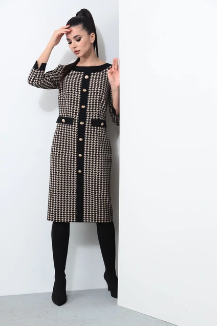 Стильное платье в стиле Коко Шанель прилегающего силуэта , без подкладки достойно самых высоких похвал! Шикарная посадка на фигуре. По верхней части переда – нагрудная и талевая вытачки, по центру и горловине переда –притачные планки из отделочной ткани . На нижней части переда платья – втачные листачки из отделочной ткани. По верхней и нижней частям спинки – талевые вытачки, в среднем шве – потайная застёжка – молния, в низу – шлица. Горловина обработана обтачкой. Длина платья по боковому шву от талии – 65 см. Рукав – втачной, 2-шовный, с притачной манжетой из отделочной ткани, высотой 4 см, длиной – 47 см. Декор – пришивные пуговицы по листачкам и передней планки могут отличаться от заявленного на фото. Это стильное платье станет неотъемлемой частью Вашего гардероба. Цвет платья может отличаться на полутон от заявленного на фото.