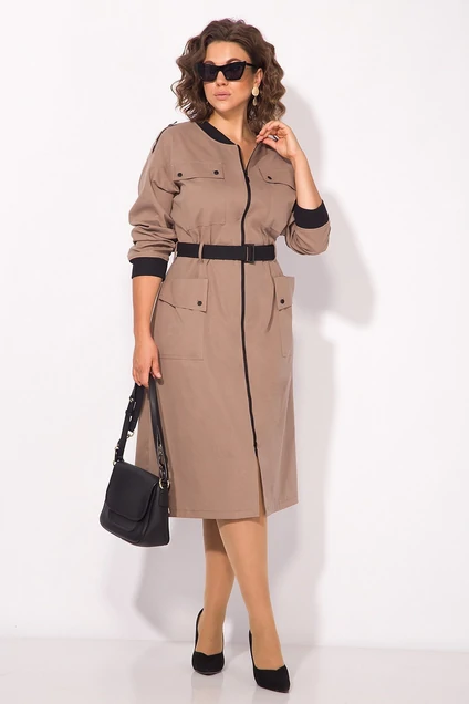Эффектное платье из хлопкового джинса полуприталенного силуэта. Модель отрезная по линии талии с легким расклешением к низу. Застежка центральная – металлическая тесьма-молния с двойным бегунком! По лифу расположены накладные карманы с клапаном. Рукав на рубашечной пройме длинный. По низу рукава предусмотрены мягкие манжеты. Горловина округлой формы с мягким довязом. По полочке также расположены накладные карманы с фигурным клапаном и застежкой на пуговицах. Спинка без особенностей. В комплекте съемный пояс в стиле спорт-шик с металлической пряжкой.