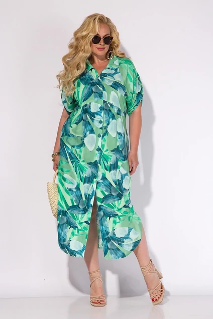 Эксклюзивное и воздушное платье-рубашка модного кроя, выполнено из натуральной вискозы, которая подарит Вам незабываемые ощущения комфорта и свободу движениям. Платье с цельнокроеным спущенным рукавом с регулировкой на пате. Застежка центральная на петли и пуговицы, с V- образным вырезом горловины с небольшим отложным воротником. Чуть ниже линии груди предусмотрен подрез с небольшой сборкой. По бокам расположены рабочие карманы. Низ изделия овальной формы с разрезами! Спинка цельная, без особенностей. Идеальный выбор для комфортного и стильного образа!