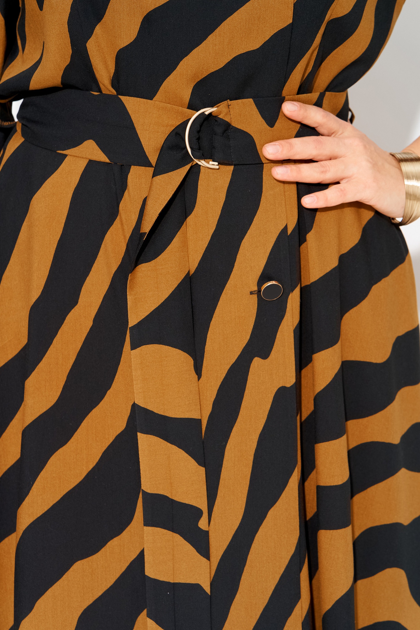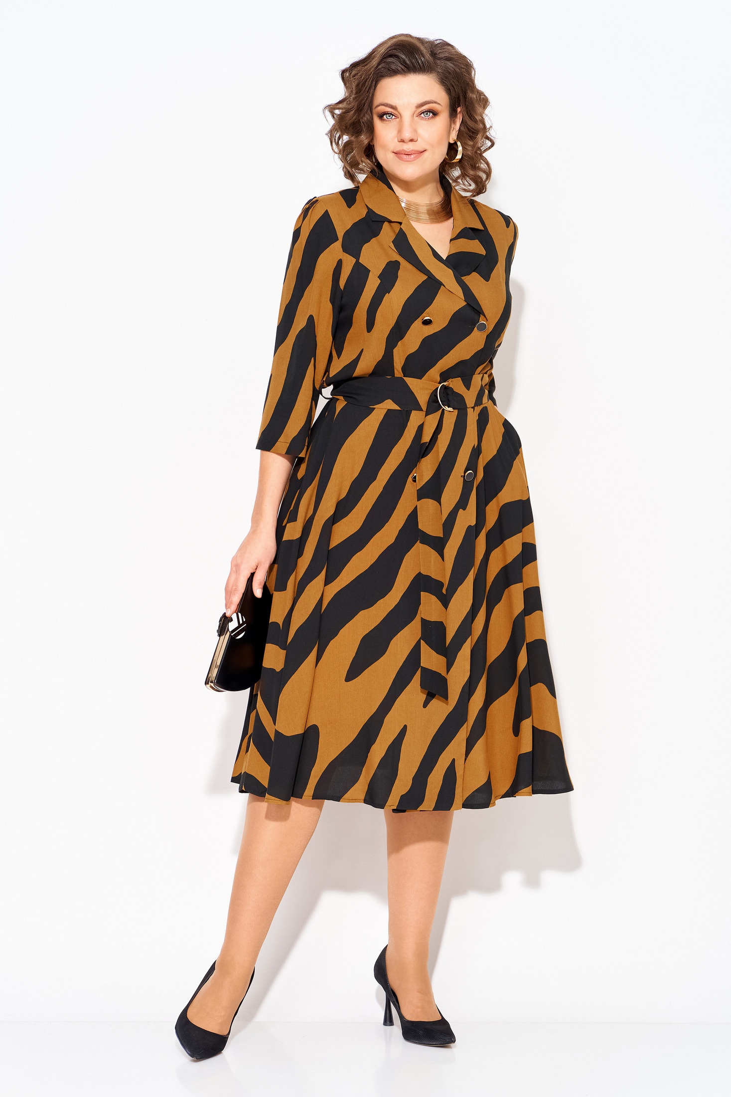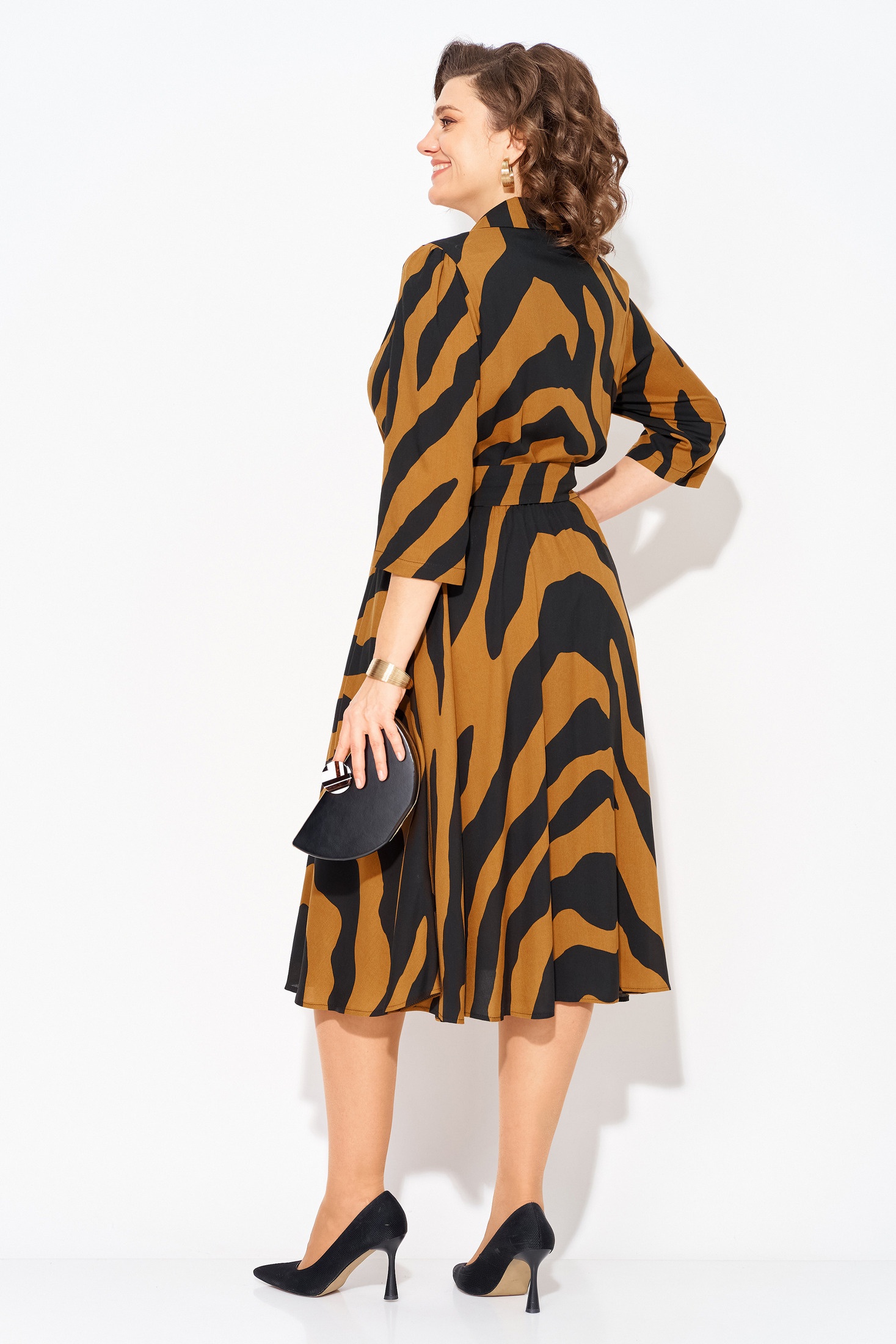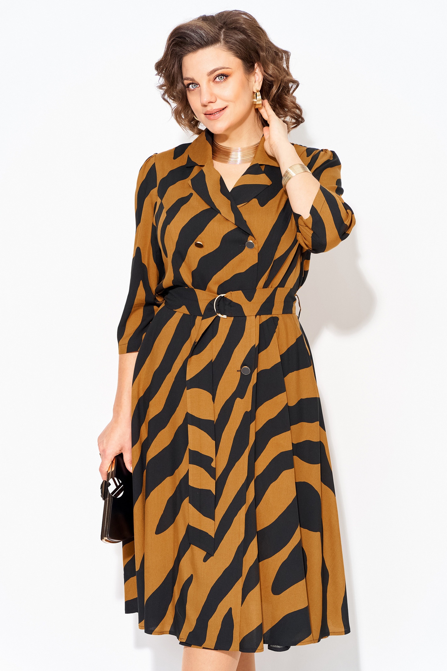 Платье 1418Н карамель + черный Liliana-style подчеркнет вашу уникальность. Коллекция бренда Liliana-style предлагает стильное изделие из хлопково-вискозной смеси, обеспечивающей комфорт и дышащие свойства. Фасон платья с расклешенной юбкой и отрезной талией идеально сочетается с английским отложным воротником и двубортной застежкой на пуговицах. Платье длиной 118-120 см и рукавами ¾-ти (рукав – 48 см) подойдет для осени и весны, а его универсальный дизайн делает его отличным выбором как для работы, так и для торжества. Карамельный и черный принт добавляют оригинальности, а съемный пояс с пряжкой акцентирует внимание на талии, создавая эффектный силуэт. Боковые карманы добавляют функциональности и удобства.