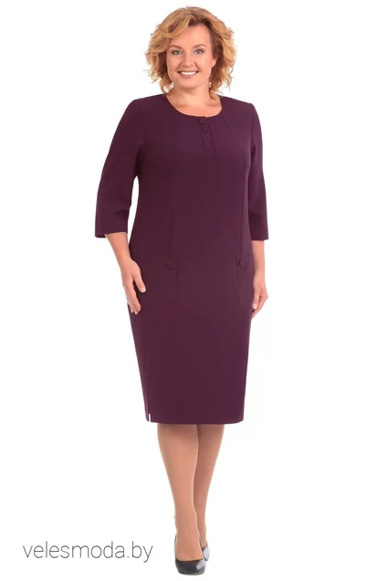 Повседневное текстильное платье полуприлегающего силуэта. Перед платья с фигурными рельефными швами, исходящими из горловины, в которых обработаны рамочки и на которые настрочены накладные карманы. Внизу рельефов находятся разрезы. Горловины круглой формы с планкой поло на 2 петли и пуговицы. Спинка платья с плечевыми вытачками и средним швом, в котором обработана застежка молния. Рукав втачной одношовный 3/4.