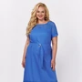 Женское текстильное платье на рост 164 см прямого силуэта со спущенной линией плеча. Рукав 3/4, внизу с разрезом. Вырез горловины лодочка. На спинке застежка на навесную петельку и пуговицу. Платье дополнено поясом. Без подкладки. Длина спинки -- 96,5см. ПОГ:48р-50см, 50р-52см, 52р-54см. ПОБ:48р-53,5см, 50р-55,5см, 52р-57,5см.