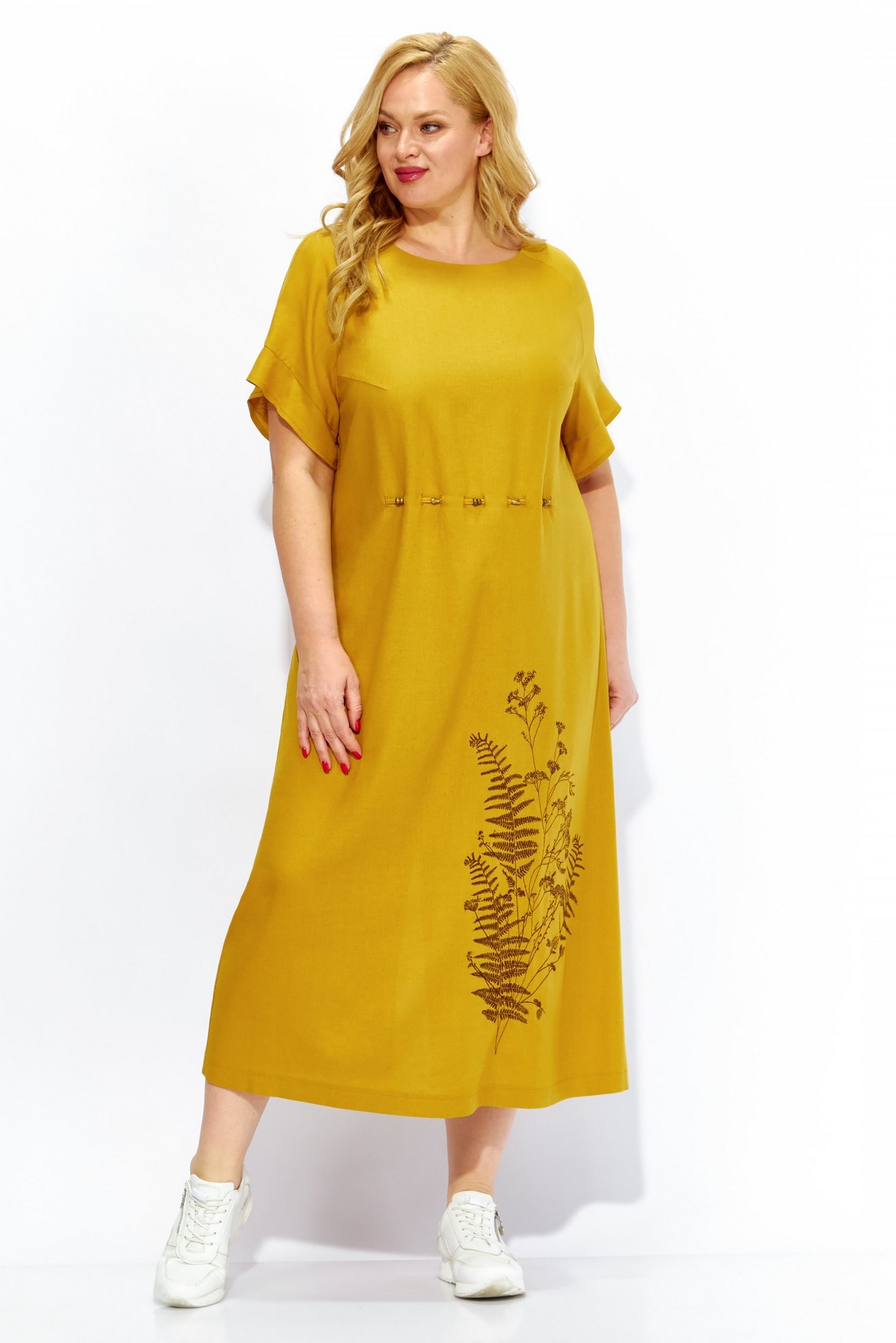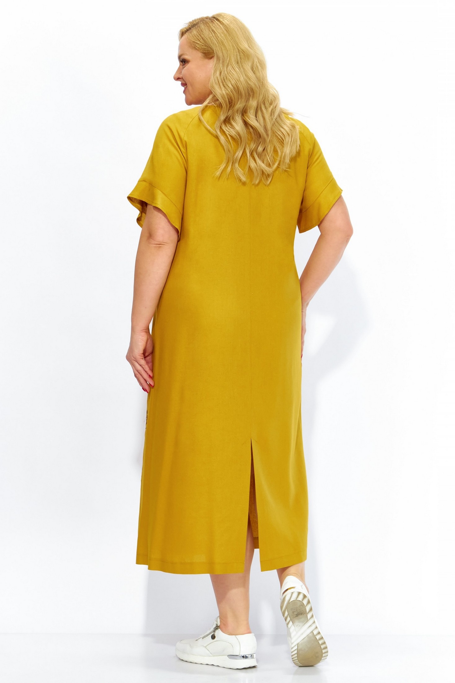 Платье 2115 Linia-L из коллекции бренда Linia-L. Летнее льняное платье подходит для жарких дней благодаря натуральным материалам: лён и вискоза. А-силуэт и вырез горловины круглой формы создают комфортный городской стиль. Рукав реглан с воланом и дизайнерская вышивка с бусинами придают платью особый шарм. Средней длины спинка с разрезом добавляет динамики образу. Оригинальный горчичный цвет подчёркивает индивидуальность и привносит яркость в летний гардероб.