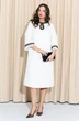 Платье с декоративным вырезом горловины. Спинка с талиевыми вытачками и потайной молнией в среднем шве. Рукава втачные, с бахромой по низу. Изделие с декоративной тесьмой по горловине и низу рукавов. Платье на подкладке по переду и спинке.