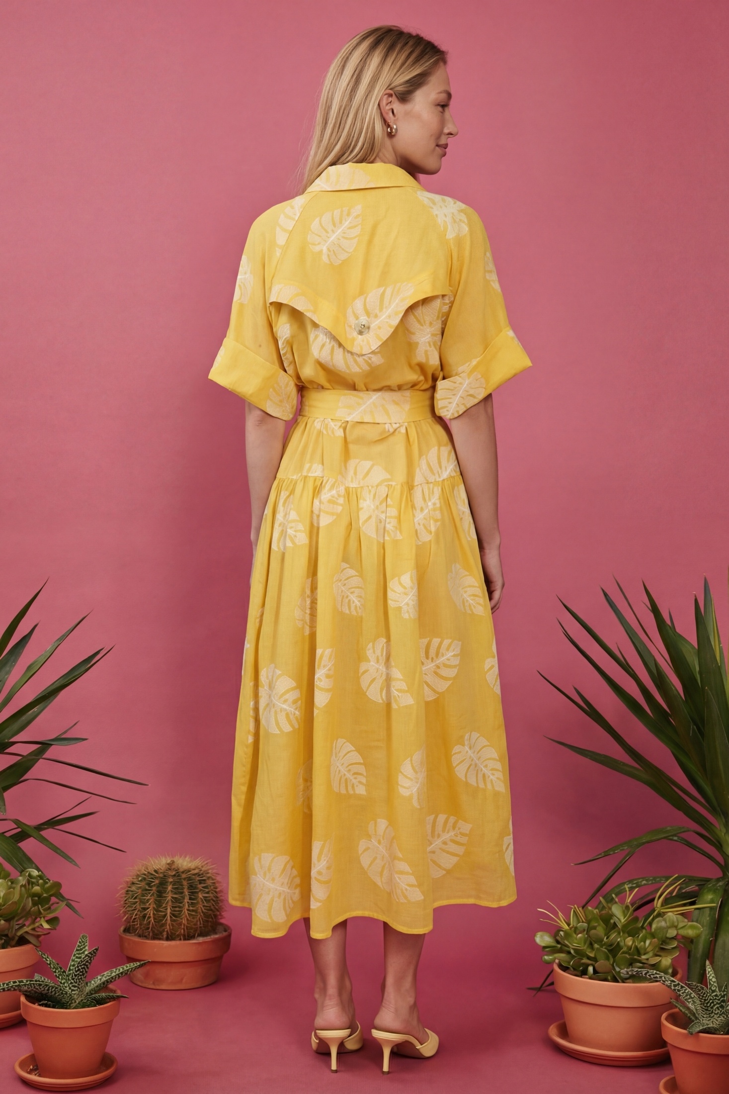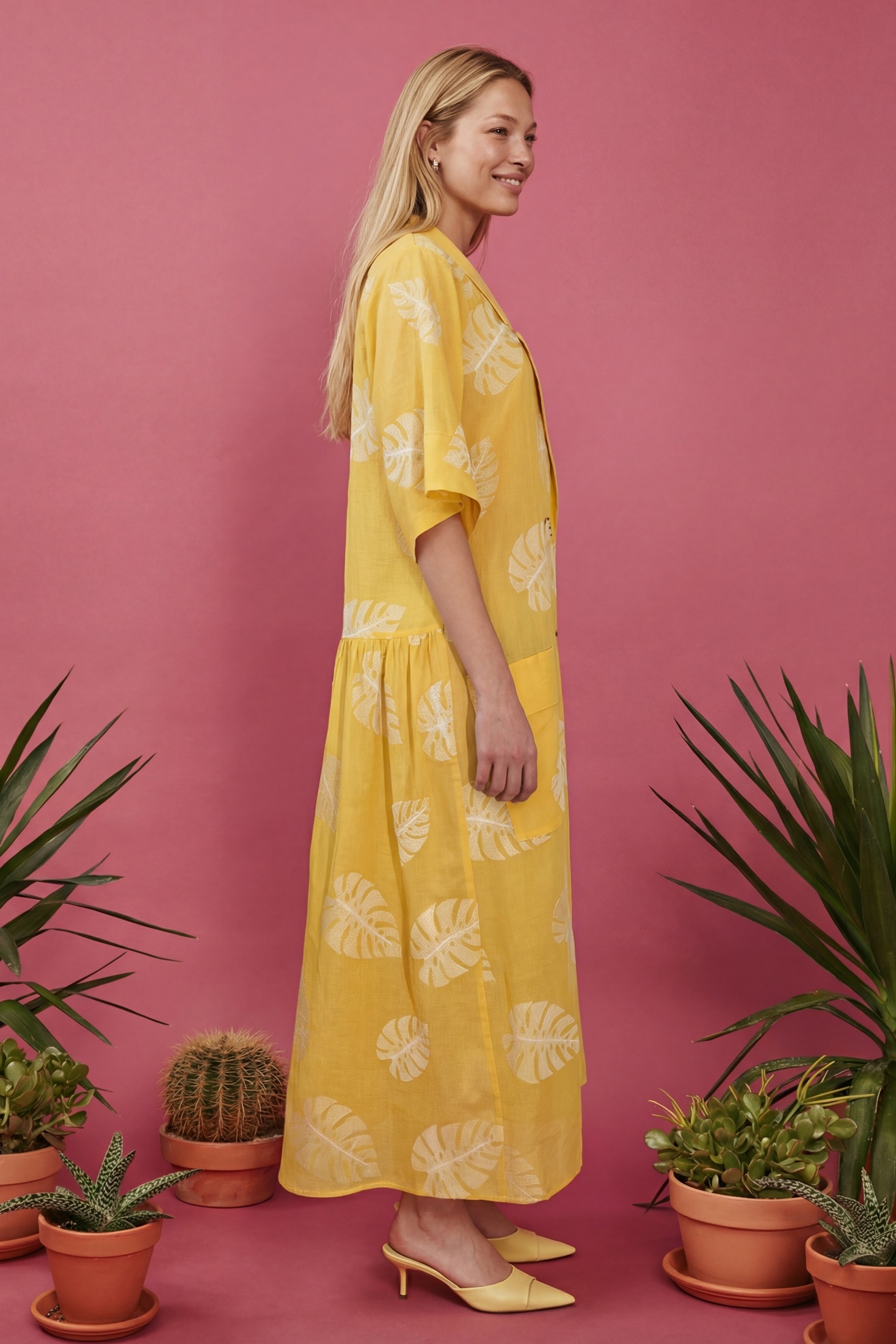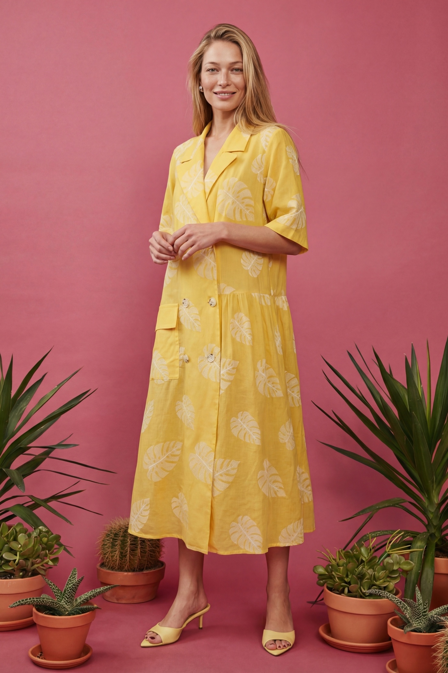 Платье 1874 желтый + белый от Lokka — стильное и летящее, созданное из 100% хлопка, идеально подходит для теплых летних дней. Коллекция бренда предлагает модель в свободном силуэте с рубашечным воротником и спущенной линией плеча. Благодаря накладному карману и акценту на бедрах платье приобретает особый шарм. Длина изделия по спинке составляет 129 см, а рукав от горловины — 40 см, что обеспечивает комфорт в носке. Его цветочное оформление подчеркивает легкость и непринужденность стиля, делая платье прекрасным выбором на каждый день и для отдыха.