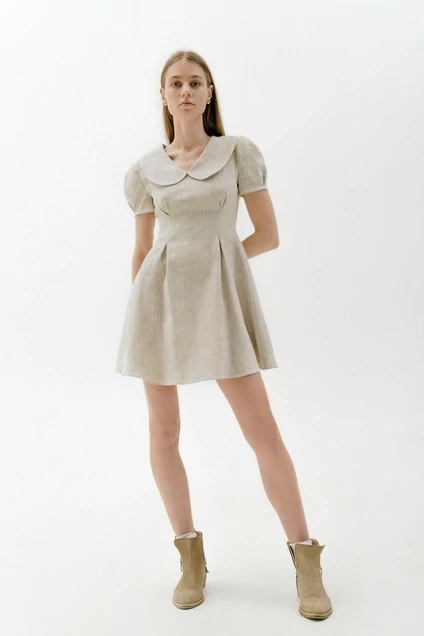 Льняное платье с широким воротом. Тонкий матовый лен имеет характерные неровности и утолщения, поэтому образ выглядит расслабленно и легко. Изящное платье из тонкого и плотного льна для расслабленных летних образов с сандалиями и вьетнамками. Пусть это платье из натурального, по-настоящему летнего льна, поможет вам ощутить весь спектр прекрасного. Застежка на молнии в шве на спинке.