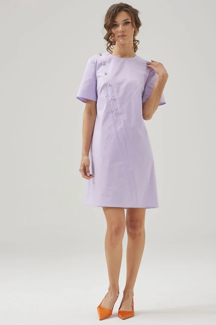 Нарядное платье их хлопковой ткани. Силуэт – трапеция. По переду изделия расположены нагрудные вытачки. Горловина округлая, по спинке застежка на петлю и пуговицу. По спинке и переду платья ассиметричная диагональная планка. На планке расположены пуговицы и декор в виде съёмной рюши из основного материала. Обращаем ваше внимание, что фурнитура может незначительно отличаться от фото. Длина рукава: 24,5 см во всех размерах