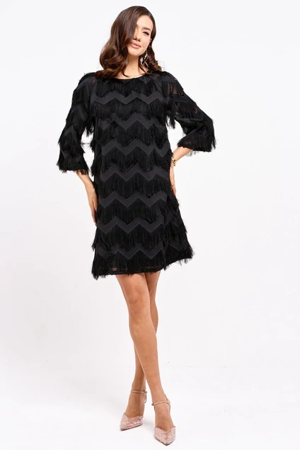 Платье прямого силуэта расширенное книзу из плательной ткани. Горловина округлая, на спинке застежка на петлю и пуговицу. Рукав покроя реглан длиной 3/4. Платье частично на подкладке. Обращаем ваше внимание, что фурнитура может незначительно отличаться от фото. Длина изделия: (44-48р – 88см)(50-54р - 92см) Длина рукава: 55см