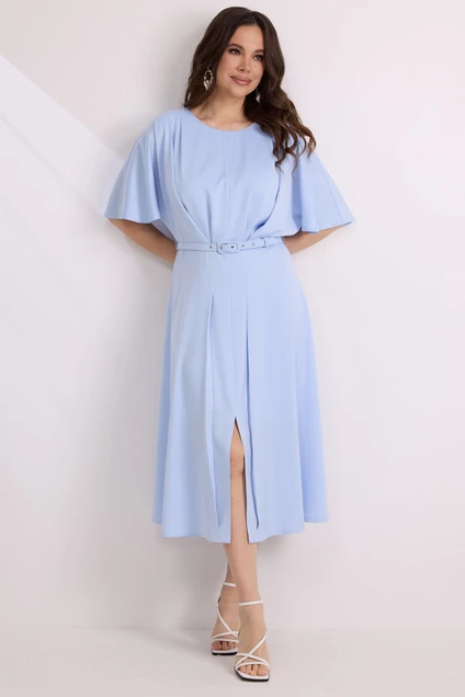 Элегантное платье А-образного силуэта. Выполнено из шелковистой ткани средней плотности с легким атласным блеском. Платье отрезное по талии. Верх платья свободный с цельнокроеным рукавом-крылышком. По плечам аккуратная драпировка. По спинке застежка на потайную молнию. Платье на подкладке.