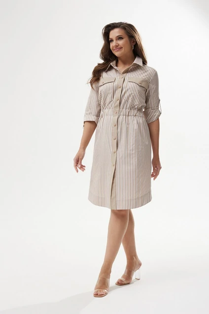 Платье 423-015 бело-бежевая полоска MALI