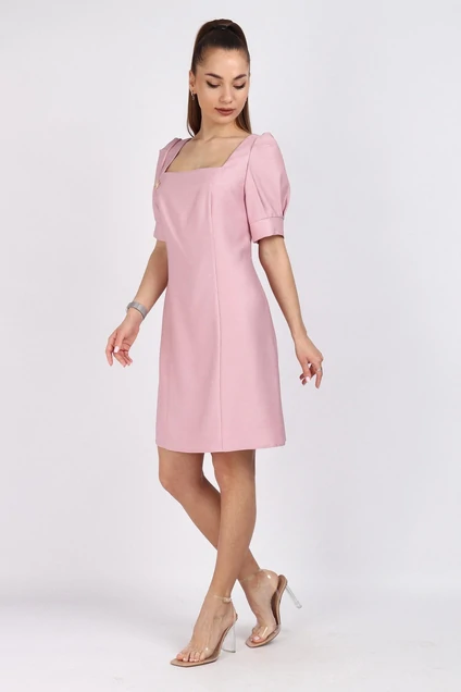 Платье женское полуприлегающего силуэта расширенное к низу.По горловине фигурный вырез.Рукав втачной со складками и на притачном манжете.По спинке застёжка на потайную тесьму молния.Длина изделия от плечевого шва 91 см,длина рукава 31 см.Изготовлено платье из облегченной твидовой ткани. Подойдет на рост 164-170 см. Цвет:королевский розовый.