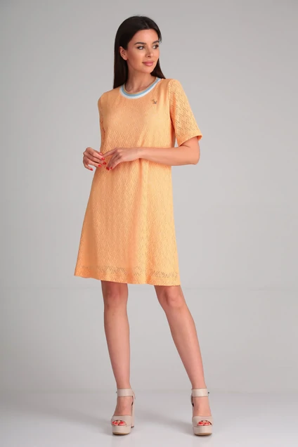 Универсальное летнее платье, которое прекрасно вольется в Вашу повседневную жизнь и для праздников. Двухслойное платье средней длинны, прямого свободного кроя выполнено из приятной на ощупь ткани. Подкладка облегченная из тонкого мягкого трикотажа — идеально подойдёт для жаркого лета. Поверх подкладки кружевной трикотаж. Рукав короткий, горловина из контрастного довяза. Универсальность кроя сделают его любимым изделием Вашего гардероба в наступающем сезоне. Длина изделия по спинке от горловины 89см (+/-1) см, длина рукава 28 см. Изделие подойдет на рост 170 см. ВНИМАНИЕ! В подарок для наших клиенток в комплекте идет брошь с эмалью в морской тематике.