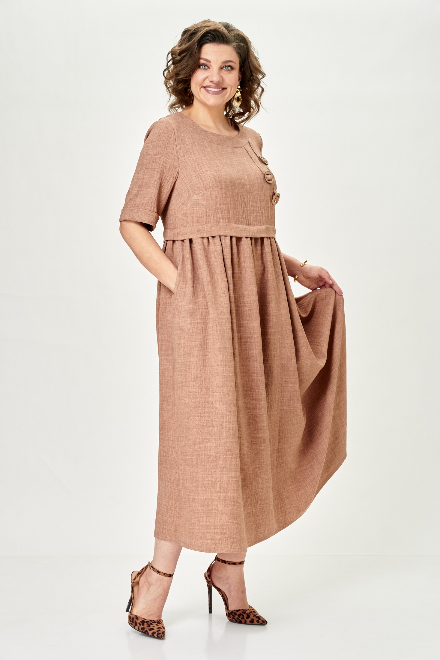 Платье 2132-1 миндальный Michel Chic от коллекции бренда Michel Chic отличается элегантностью и комфортом. Это длинное платье свободного кроя с длиной по спинке 127 см и рукавами 45 см выполнено из легкого полиэстера, что придаёт ему струящуюся текстуру. Миндальный цвет добавляет мягкую свежесть в образ. Платье имеет завышенную талию, округлую горловину и удобные боковые карманы. Особая деталь — завязка на спинке, подчеркивающая изящность силуэта. Идеально подходит для межсезонья и любого случая: от повседневных выходов до праздников. Это платье легко сочетать с различными аксессуарами для создания уникального стиля.