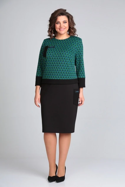Платье женское полуприлегающего силуэта. Округлый вырез горловины. Рукав втачной, на манжете. По переду выполнены функциональные накладные карманы. В среднем шве спинки-застёжка на тесьму-молнию и разрез.