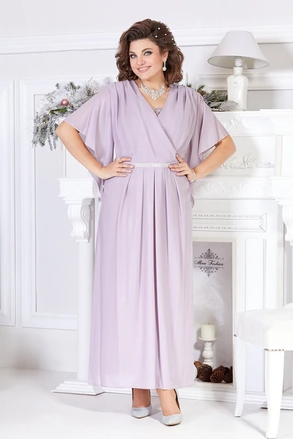 Нарядное женское платье полу-прилегающего силуэта, выполнено из шифона с напылением, в качестве отделки кружево. Лиф платья отрезной по линии талии, с втачным поясом из шифона и декорирован стразами. Горловина платья V-образной формы, лиф на запах, с вставкой из кружева. Юбка платья расклешенного силуэта, выполнена из шифона, по линии талии складки. Спинка идентична полочке, выполнена из шифона, в боковом шве потайная молния. Рукав втачной, расклешенный, оптимальной длины. Роскошное платье для роскошных форм! Длина 140 см в 62р. Ширина груди- 63см, Ширина талии -54см, Ширина бедер- 72см, длина рукава- 28см