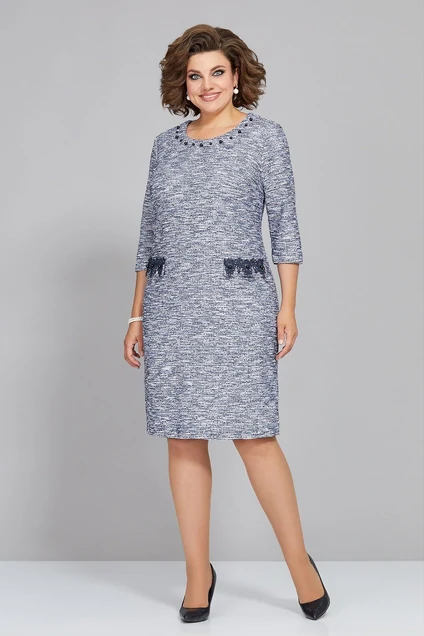 Элегантное женское платье полу-прилегающего силуэта, выполнено из меланжевого трикотажного полотна, на трикотажной подкладке (все хорошо тянется). Платье немного расклешенная к низу, горловина платья округлой формы, на обтачке, которая декорирована бусинами. На полочке обработаны нагрудные вытачки и накладные карманы с кружевом и бусинами. Рукав втачной, длиной 3/4, выполнен из основной ткани. Спинка идентична полочке, со средним швом и вытачками, в средний шов вставлена потайная молния. Универсальное платье прекрасно впишется в ваш гардероб! Длина 102 см. в 52р. Ширина груди- 52см, Ширина талии -49см, Ширина бедер- 57см, длина рукава- 44см, ширина рукава 19см