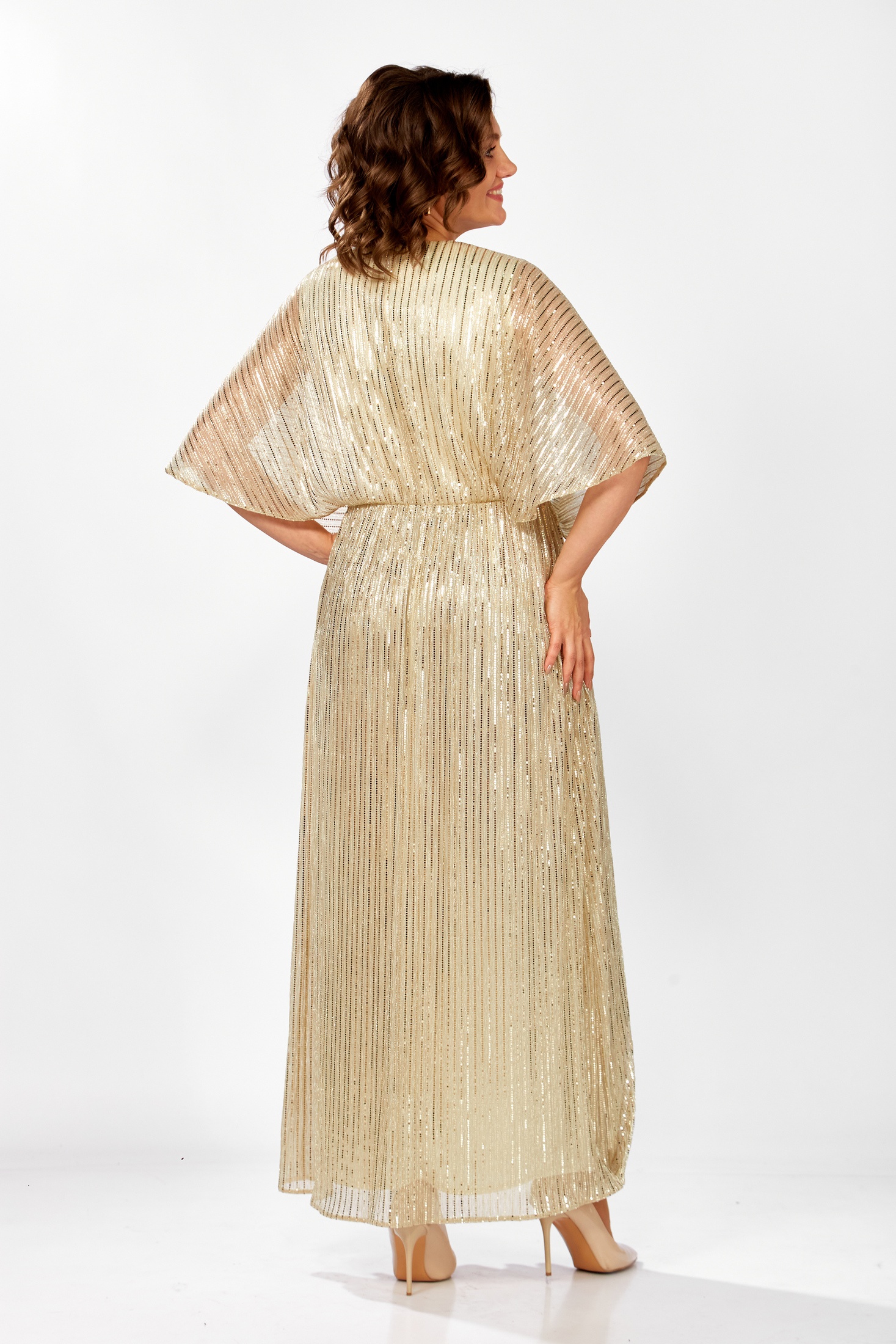 Нарядное женское платье, полу-прилегающего силуэта, выполнено из плиссированной ткани с пайетками. Лиф платья с V-образной горловиной, по линии талии отрезной, на резинке. Лиф платья двойной, нижняя часть из атласа, верхняя часть свободного покроя из плиссированной ткани, со спущенным рукавом, по линии талии декор в виде аппликации из кружева. Юбка расклешенного силуэта, присборена по линии талии, на подкладке. Спинка идентична полочке, отрезная по линии талии, с резинкой. Эффектное платье из яркой ткани отличный выбор для любого мероприятия! Длина 145 см. в 52р. Ширина груди- 53см, Ширина талии -47см, Ширина бедер- 59см, длина рукава- 36см, ширина рукава 21,5см.