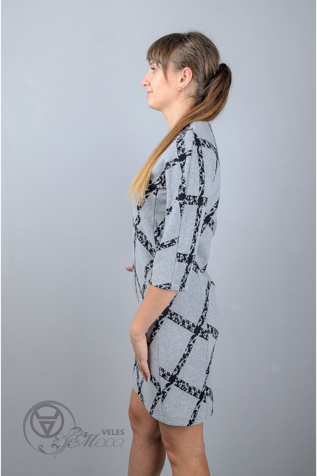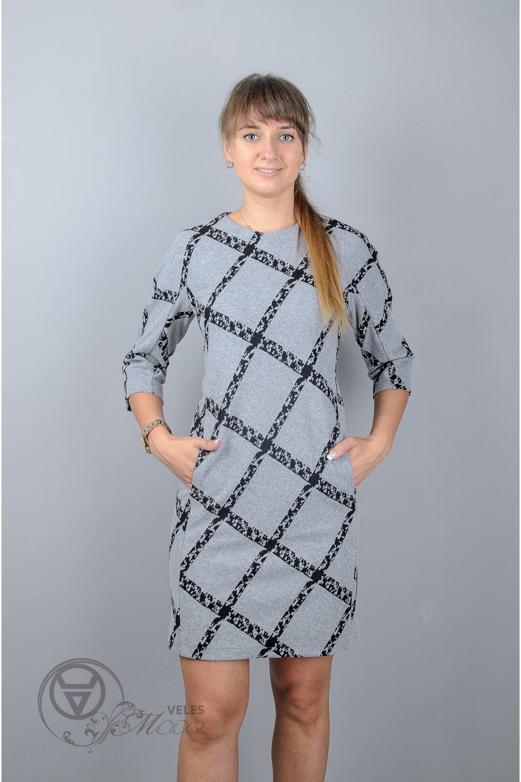 Длина изделия: 90 см Длина рукава: 41 см Комплектация: Платье Характеристика: Платье прямого силуэта. Цельнокроеный рукав 3/4. Круглое горло. Потайные карманы.