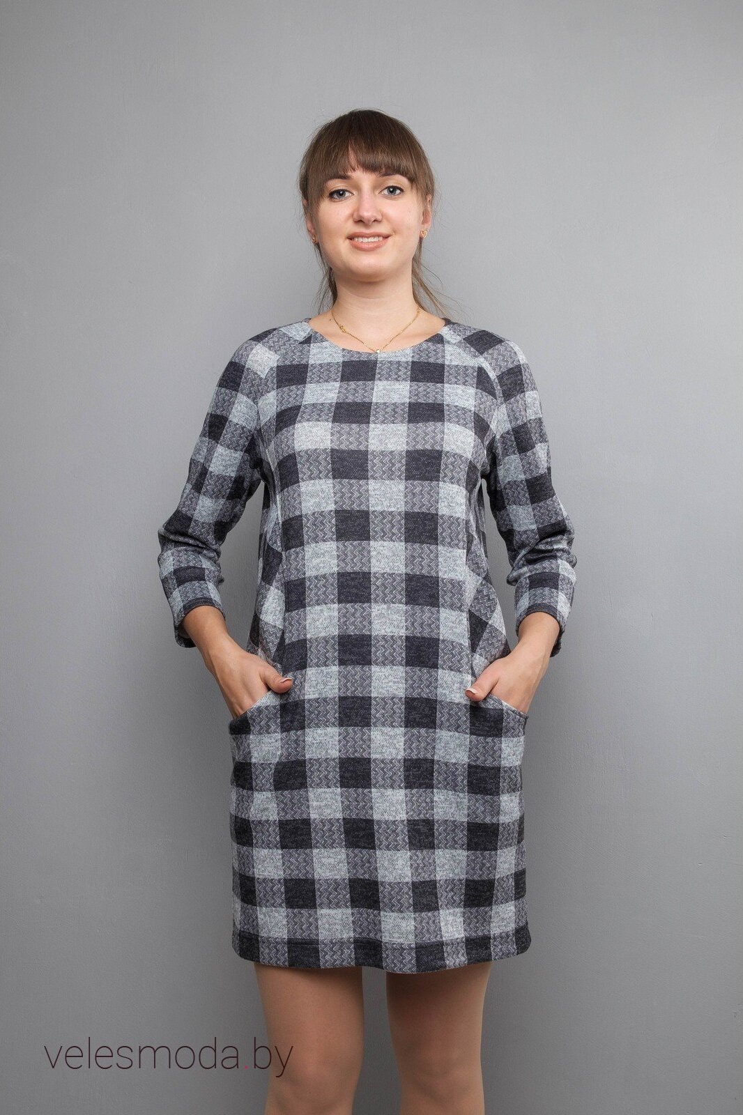 длина изделия: 86 см длина рукава: 58 см комплектация: Платье Характеристика: Платье прямого силуэта. Круглая горловина. Длинный рукав реглан. Карманы в рельефах.