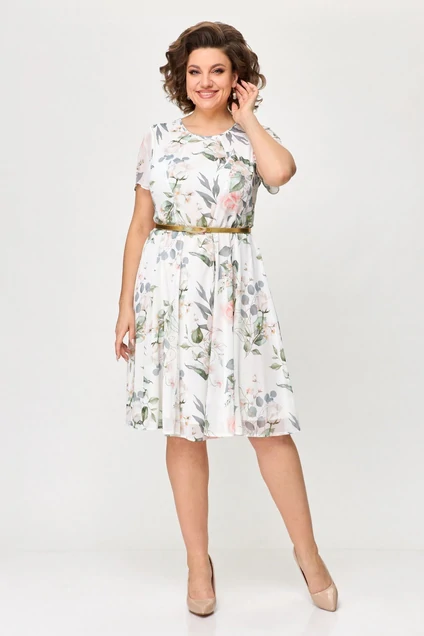 Платье женское полуприлегающего силуэта, расширенного к низу, на подкладке, тесьма-молния в среднем шве спинки. По переду располагается рельефы от проймы, по центру от горловины вставка фигурной формы. Спинка с рельефами от проймы, от горловины центральная вставка со средним швом. Горловина переда окантована косой бейкой. Горловина спинки обработана обтачкой. Рукав одношовный, втачной, свободный.