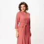 Платье женское прямого силуэта, на подкладке, тесьма-молния в левом боковом шве. Платье состоит из двух слоев шифона, верхний слой отлетной, обработаны разрезы по боковым швам, начинаются выше линии талии. Перед с нагрудными вытачками. Спинка не разрезная. Рукав длинный до запястья, свободный, двухшовный, втачной, обработан разрез по центру рукава, по середине закреплен закрепкой, по низу заложена сборка, притачная манжета. Горловина обработана обтачкой.