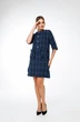 Комфортное хлопковое платье длиной миди свободного прямого кроя со стояче-отложным рубашечным воротником. Рукава втачные длиной три четверти. По боковым швам - разрезы. Изделие без подкладки, с карманами.