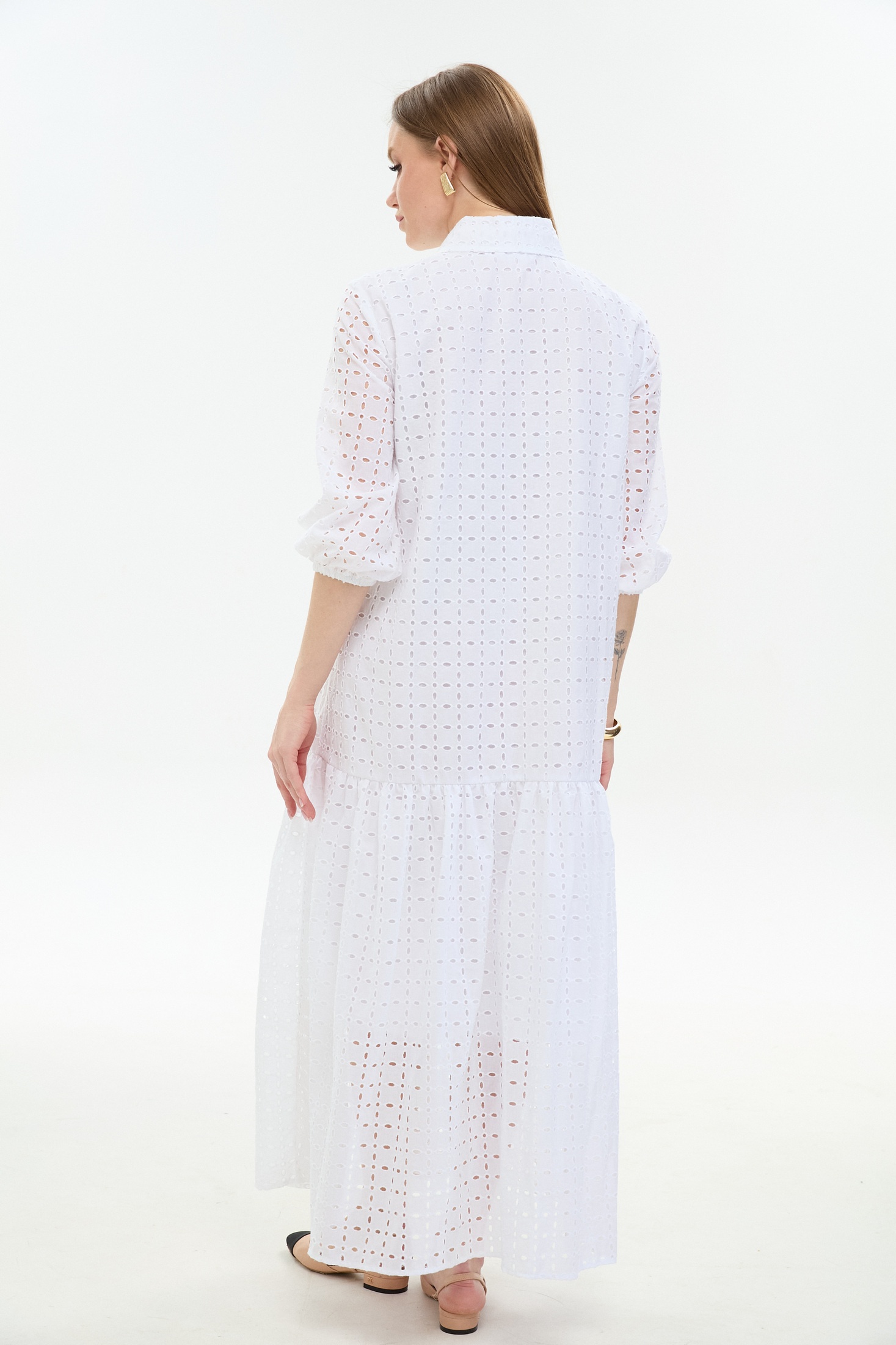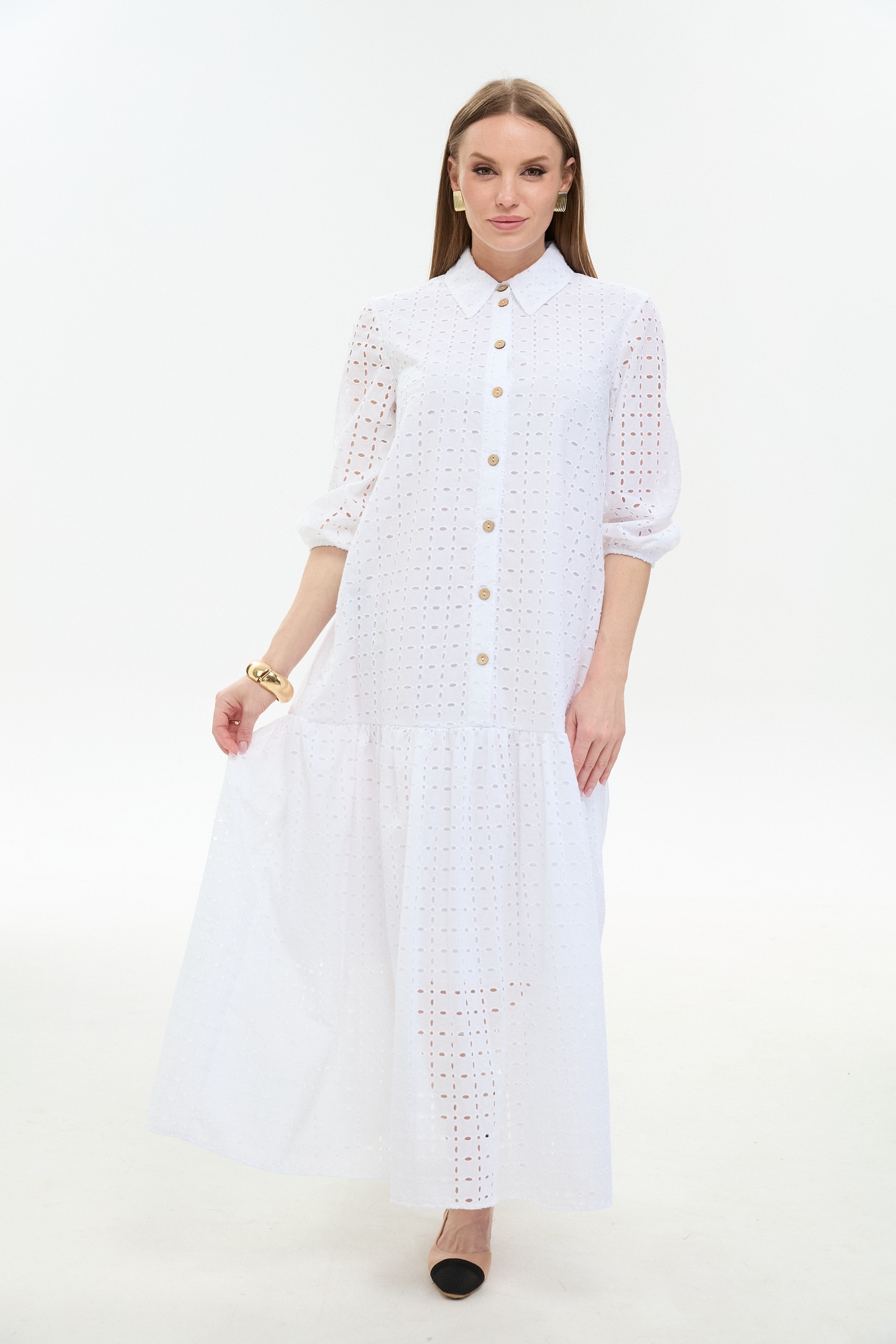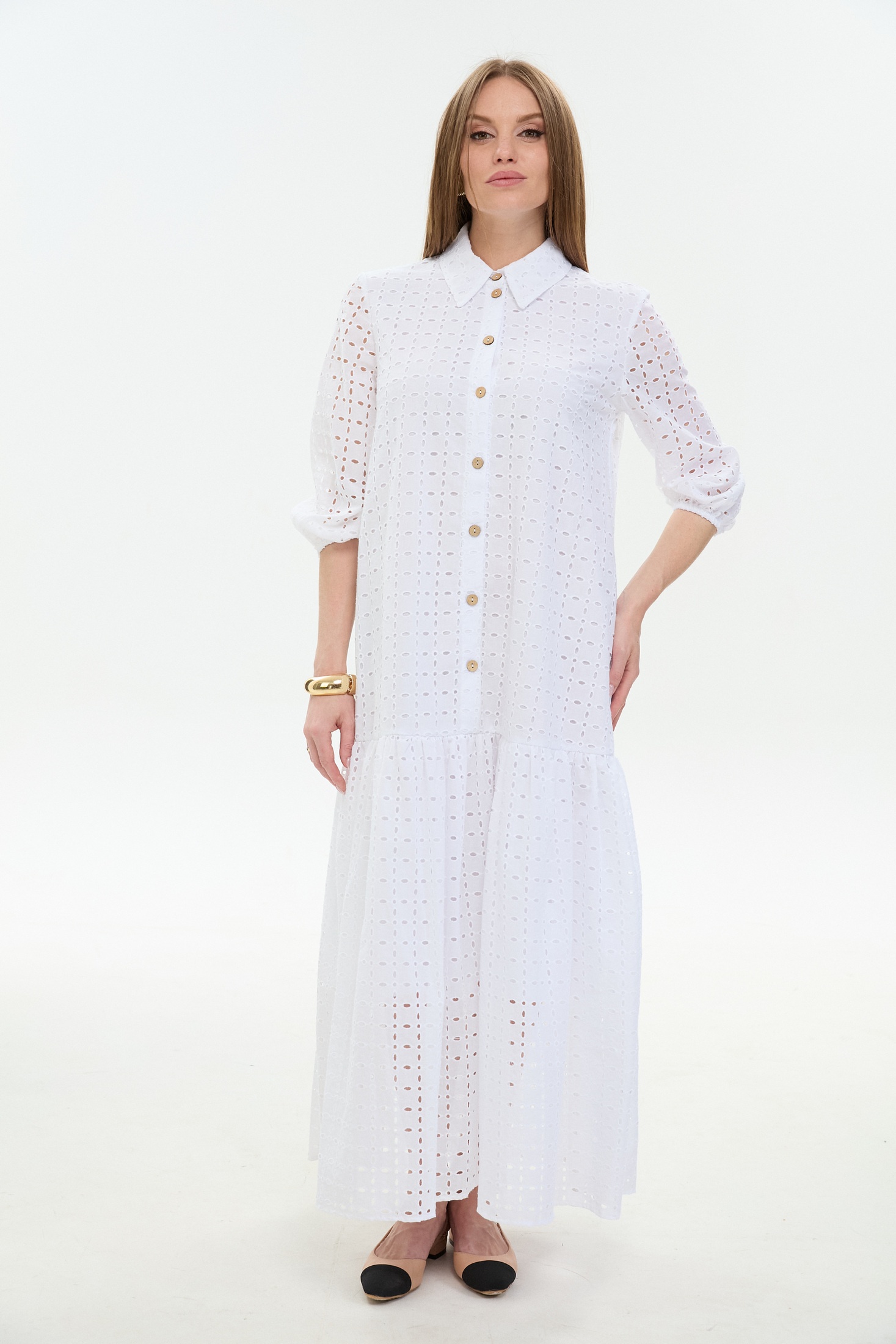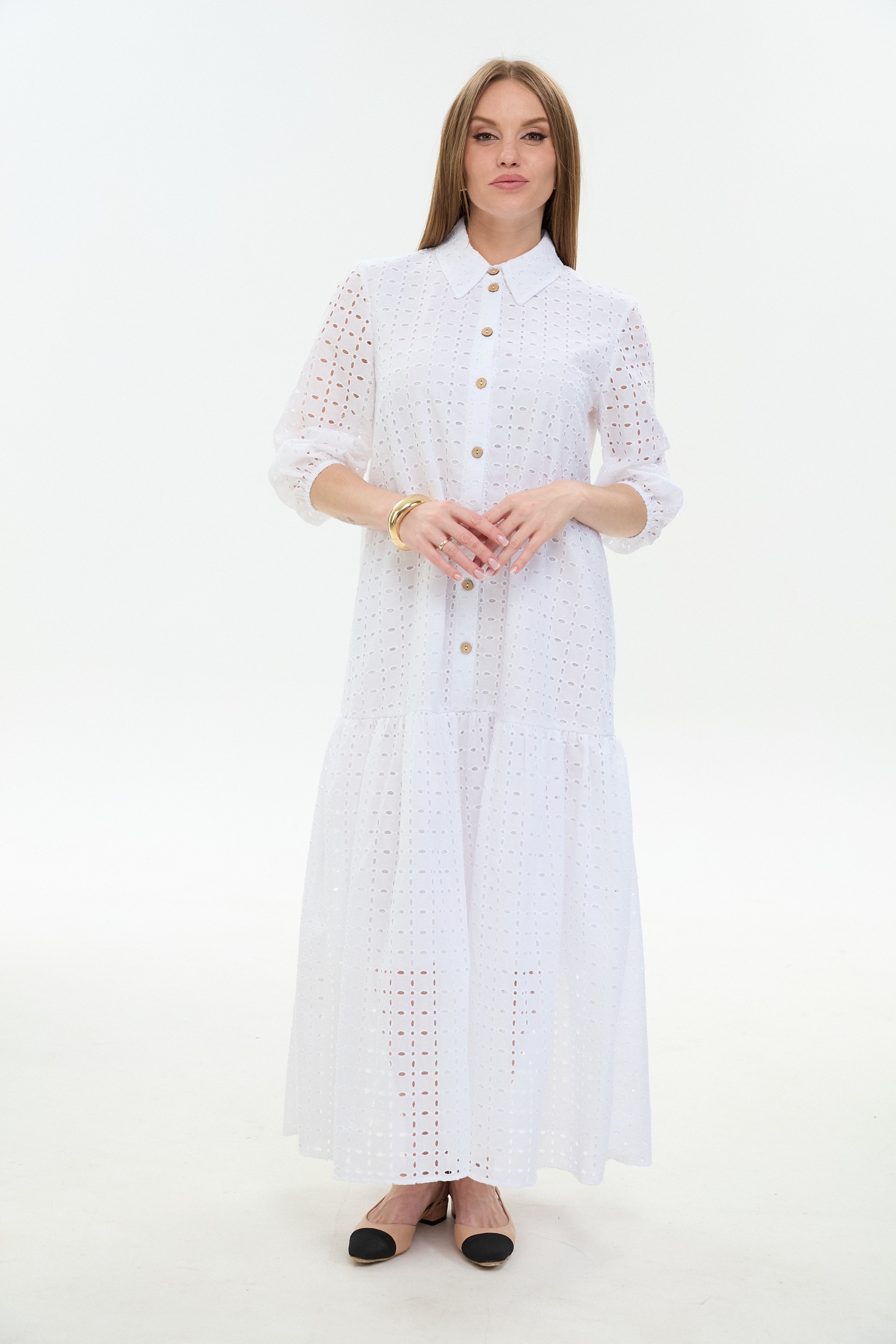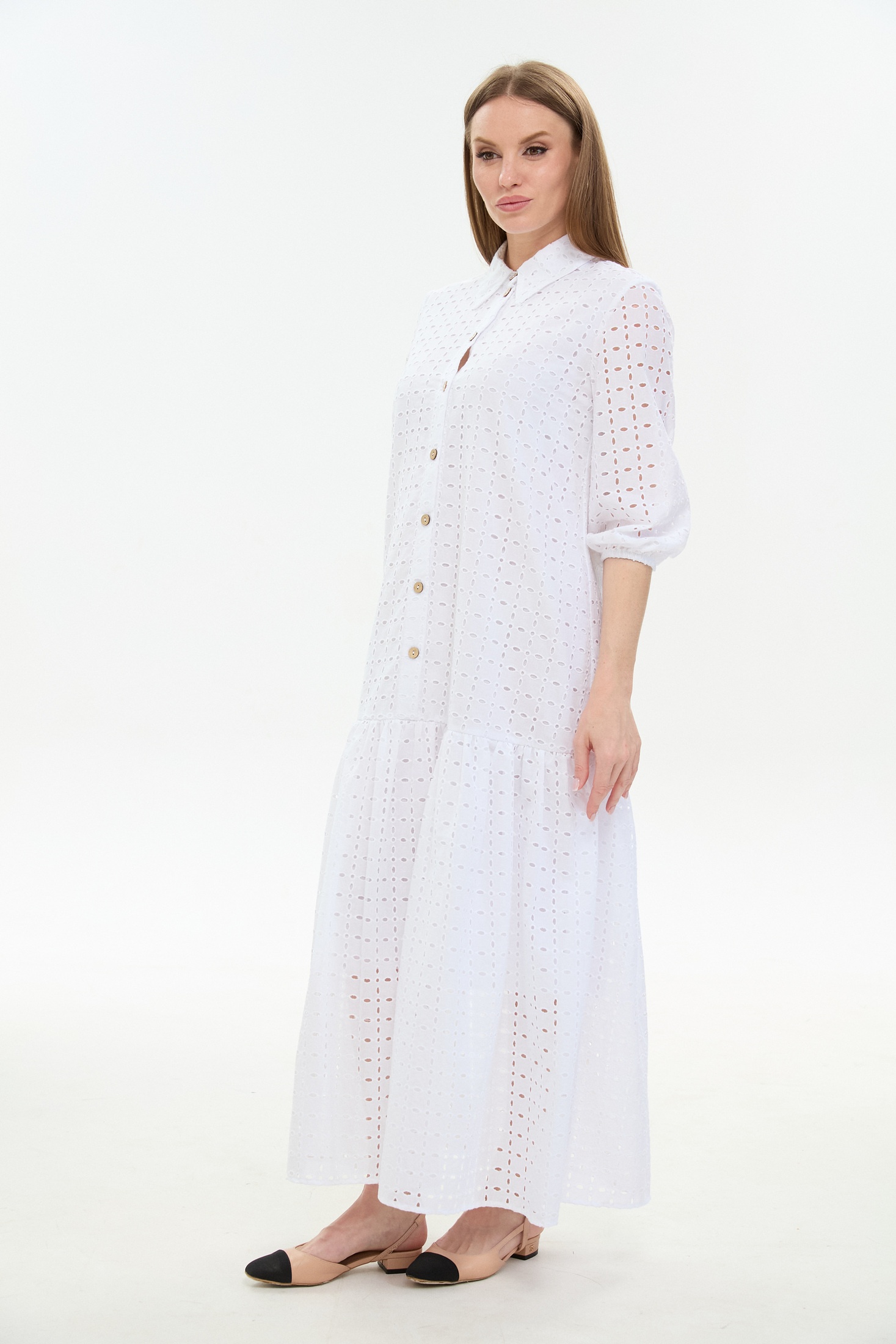 Платье 800-10 белый NikVa — идеальный выбор для летнего сезона. Коллекция бренда NikVa предлагает макси платье из 100% хлопка, обеспечивающее лёгкость и комфорт в жаркие дни. Прямой свободный силуэт с воланом по низу изделия добавляет воздушности и женственности. Плосколежащий воротник и центральная застёжка на петли и пуговицы подчёркивают классический стиль. Втачной рукав завершает образ, идеально подходя как для повседневной носки, так и для деловых встреч. Белый цвет придаёт свежести и универсальности вашему гардеробу.