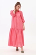 Платье состоит из двух платьев: нижнего и верхнего. Верхнее платье макси прямого свободного силуэта с воланом по низу изделия. Рукав втачной. Горловина обработана плосколежащим воротником. Центральная застёжка на петли и пуговицы. Нижнее платье комбинация на регулируемых бретелях.